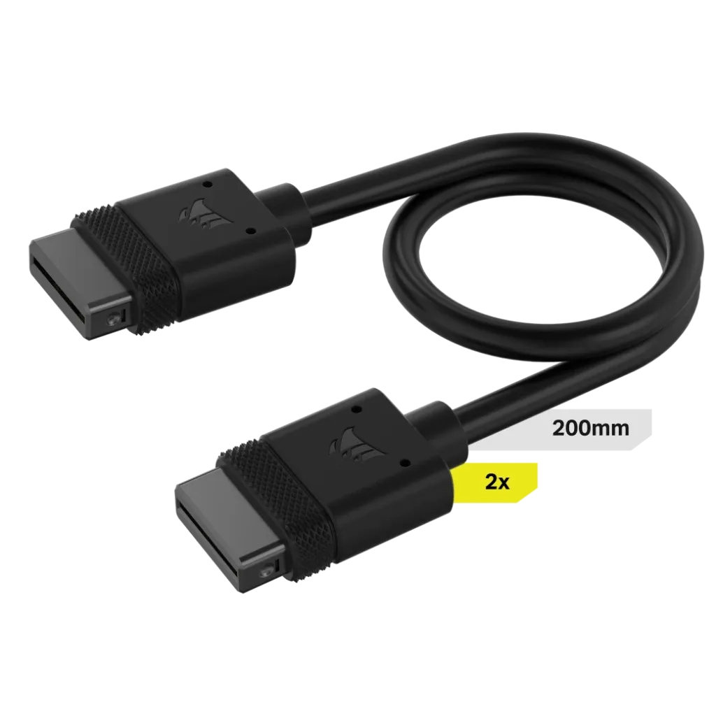 Corsair iCUE LINK Cable; 2x 200mm with Straight connectors; Black